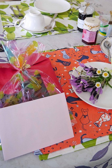 朱色の猫柄ランチョンマットもプレゼントのひとつで