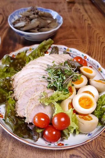私が作った煮豚には玉子の味噌漬けを添えて