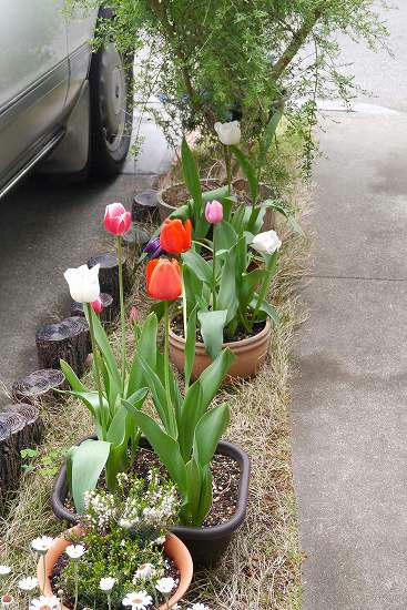 ウチの花壇のチューリップが満開だ。