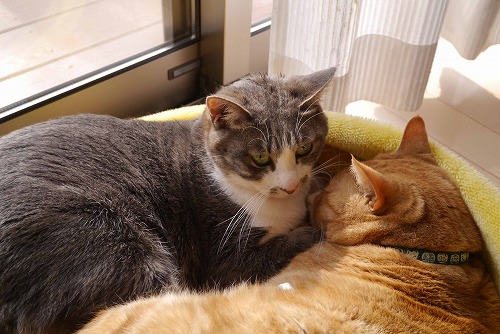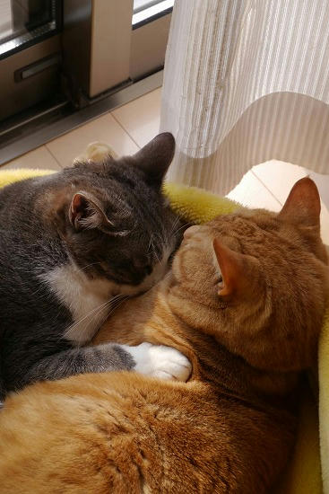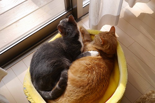 兄弟仲良く日向ぼこ。(ぼっこ、じゃなく「ぼこ」と言いたい)