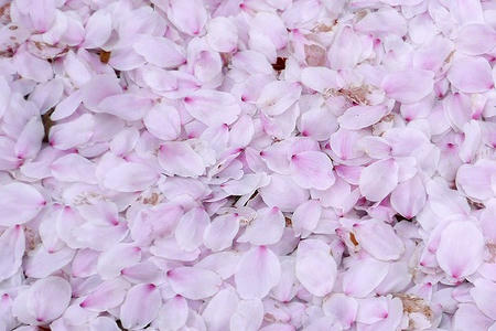 ハーブ園の入り口には風で「桜溜まり」があちこちにできていて