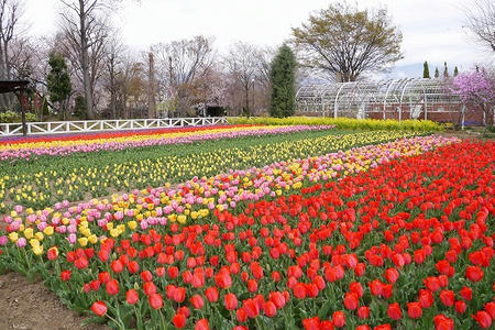 園内のチューリップは今が見ごろ。