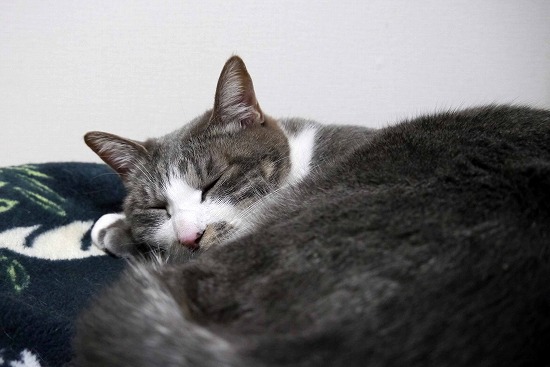 逃げ出しもせず、しばらくは丸くなって寝ている。