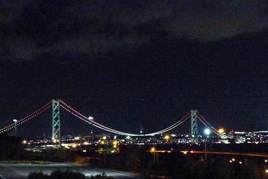 バスは夜の新明石大橋を通って