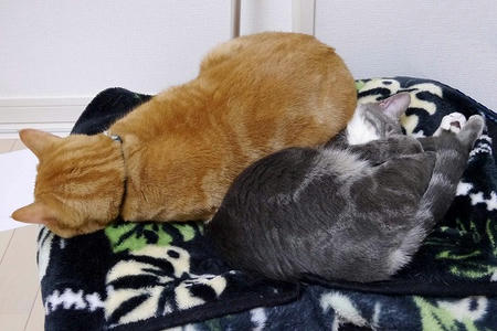 夜は私の部屋のホカペの上で同じような光景が見られる。