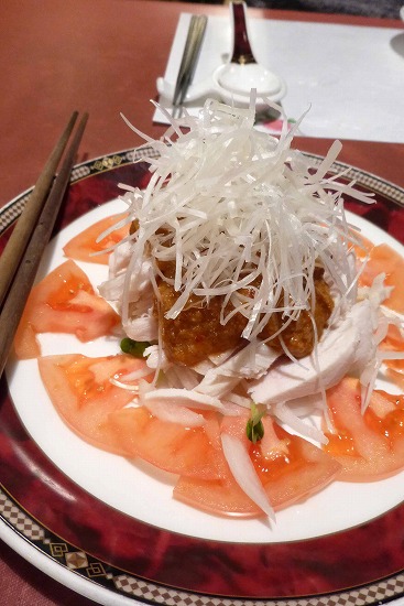 トマトと白髪ネギ添え。