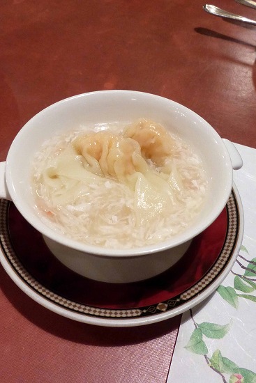 エビワンタンに蟹肉と玉子がたっぷり入ったスープ。