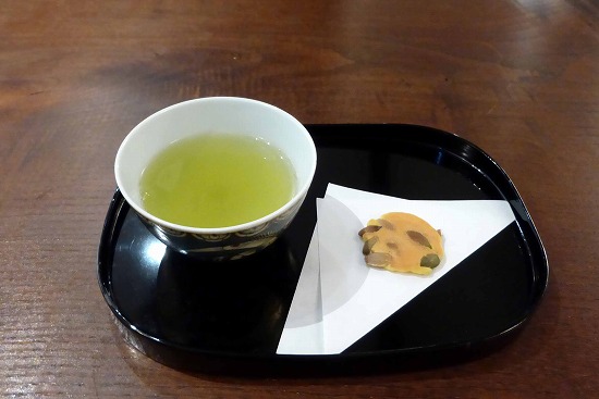 お菓子は岐阜のナントカという店のかぼちゃせんべい。