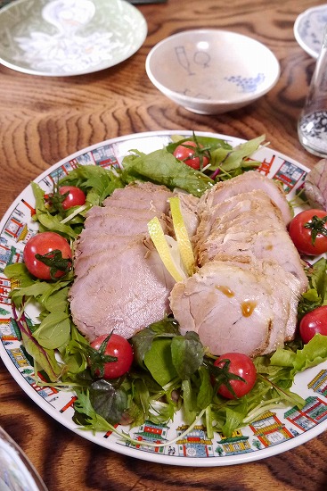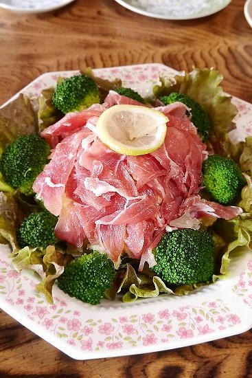 生ハムの色をプリーツレタスとブロッコリーが引き立てている。