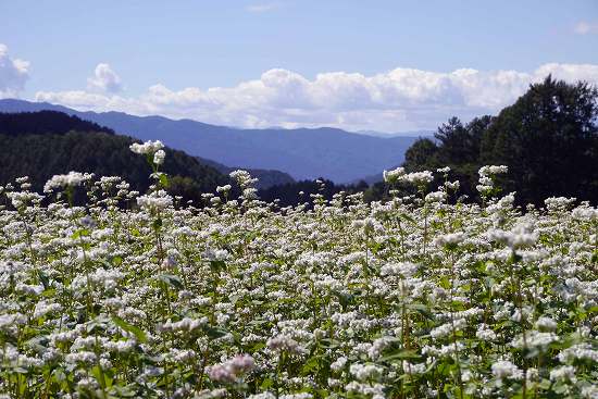空と山と蕎麦畑と。