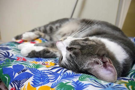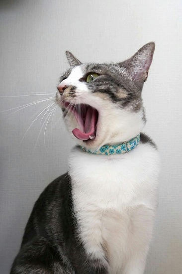 あくびをする銀猫。