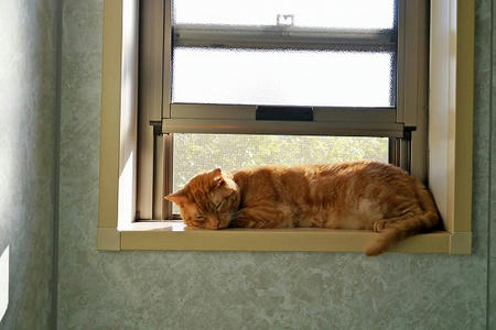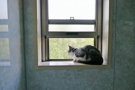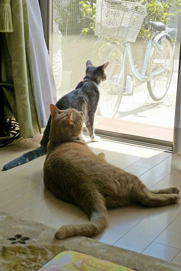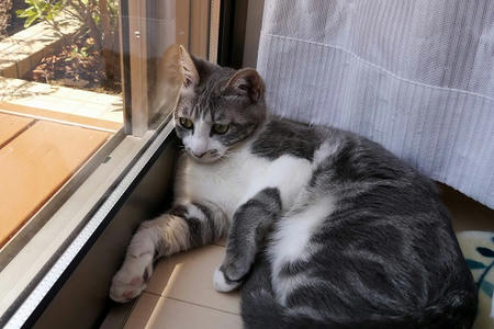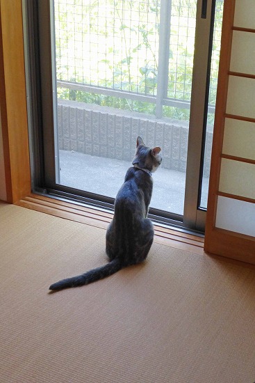 猫は、梅雨前の湿った空気に鼻をひくひくさせる。