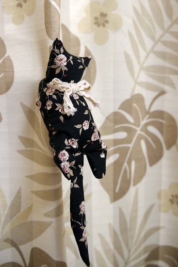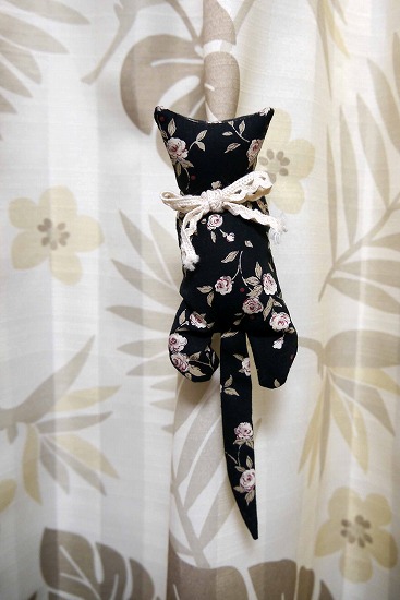 大型の洗濯ばさみを土台にして、布でくるんだ猫ばさみだ。