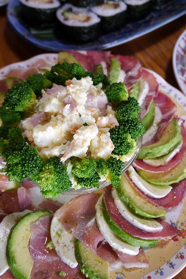 生ハムとアボカド、モツァレラチーズのカプレーゼ。