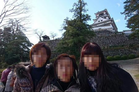 板垣さんの銅像を横目で見て、とりあえず自撮り。