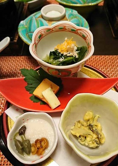 小鉢は柿の白和え、手前はイカの醤油漬け。