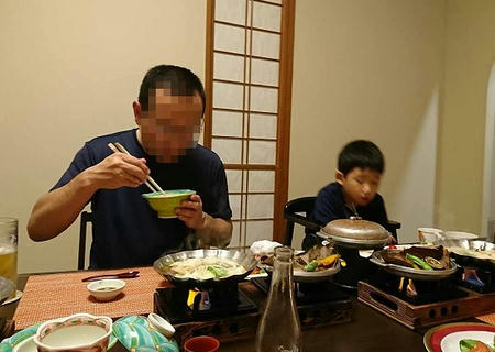 8月、弟一家と土湯温泉に泊まった時の夕食