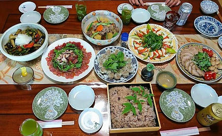 この他に従姉の自慢の赤飯などがテーブルに並ぶ。
