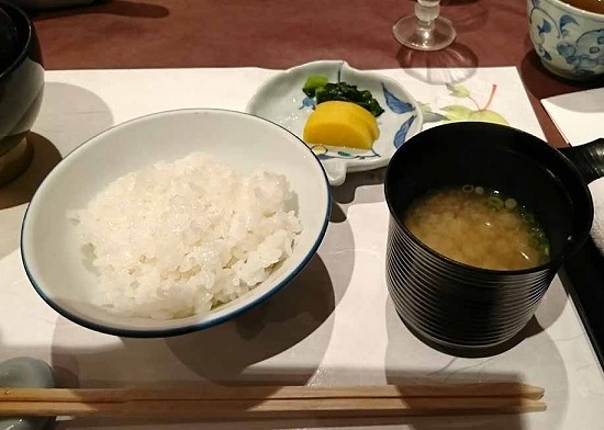 諏訪湖(たぶん)のシジミの凝縮した旨みの味噌汁とごはん。