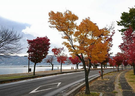 そのまま諏訪に向かい、夕方、諏訪湖を30分くらい走る。