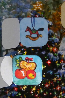 昨日のオーナメントの下、ツリーの中程。