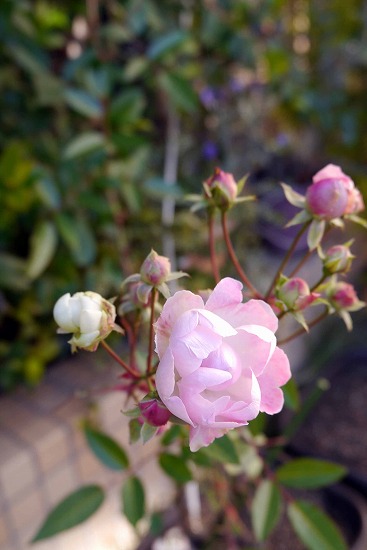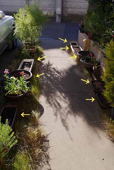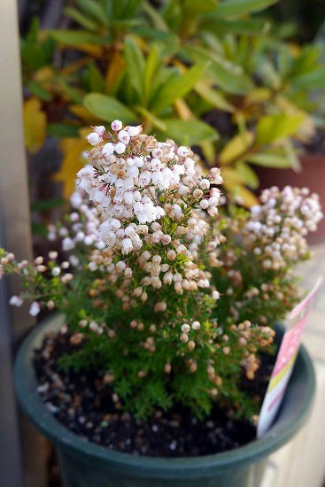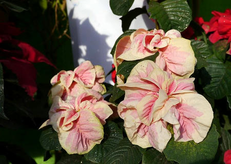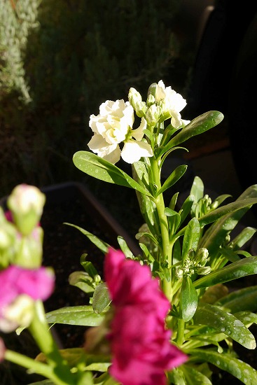 白、濃いピンク、フクシアの3色を寄せ植え。